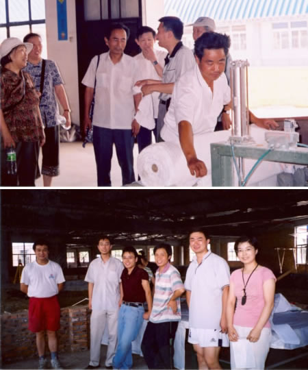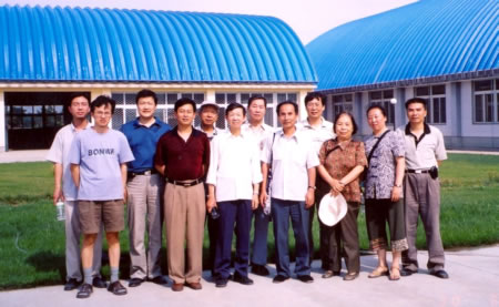 “七一”前夕,泥沙所党支部组织党员和积极分子到基地慰问日夜奋战在这里的同志们,同时也让大家了解基地情况,接受实践教育。东西长度为320米的试验厅从1999年开始建设,根据经费和试验的需要,建设分了四期,由于第四期的简易试验厅刚刚建成,窗户上的玻璃还没来得及装上,郊外飞扬的风沙穿过试验厅和同志们的汗水交织在一起,大家奔忙的身影时而在模型上,时而在图纸前,放线、制模、放水前的准备工作正在紧张地进行。试验厅内一派繁忙的景象与厅外绿草荫荫、蝉鸟吱吱叫,绘合成一幅美丽的图画。